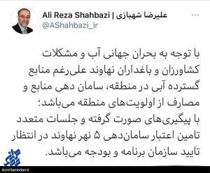 همچنین پیرو پیگیریها و جلسات متعدد علیرضا شهبازی نماینده مردم شریف نهاوند در خصوص تأمین اعتبار مورد نیاز برای ساماندهی نهر شعبان و سایر انهار پس از جلسات متعدد در سطح استان و کشور و با توجه به موافقت صورت گرفته، تخصیص اعتبار فوق جهت شروع عملیات عمرانی پروژه ی مذکور منتظر تأیید سازمان برنامه و بودجه می باشد که با تایید نهایی، عملیات عمرانی با تخصیص اعتبار مربوطه شروع خواهد شد.