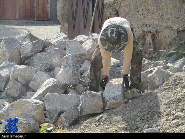 تعمیر و بهسازی تعدادی از خانه ها را بسیج طلاب عهده دار شده است و امروز به روستای درواز یکی از دورترین روستاهای تویسرکان می رویم جایی که حتی مدیر حوزه علمیه شیخ علیخان زنگنه خود بیل به دست شده و آب بر روی سیمان می ریزد و آجرها را یکی یکی برای مرمت خانه یکی از روستائیان روی هم می گذارد.