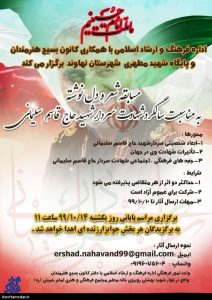 امیر بحیرایی گفت: به مناسبت سالگرد شهادت سردار شهید حاج قاسم سلیمانی مسابقه شعر و دل نوشته در نهاوند برگزار و یاد سردار دلها گرامی داشته میشود.