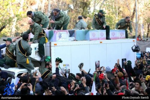 چشم دوخته بودم به درب دانشگاه تهران و انتظار می‌کشیدم تا پیکر پاک سردار سلیمانی را ببینم، تا چشم کار می‌کرد جمعیت بود و جمعیت… بالاخره لحظه وصال رسید و چشم‌ها روشن شد به پیکری که در تابوت، پرچم غرور آفرین کشورمان بر آن کشیده شده بود…