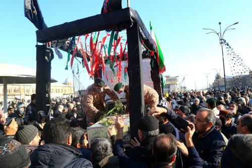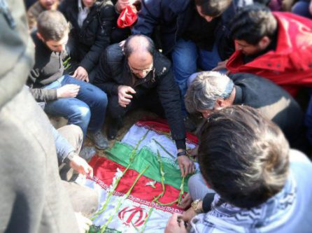 تشییع شهدای گمنام بر روی دستان مردم همدان
