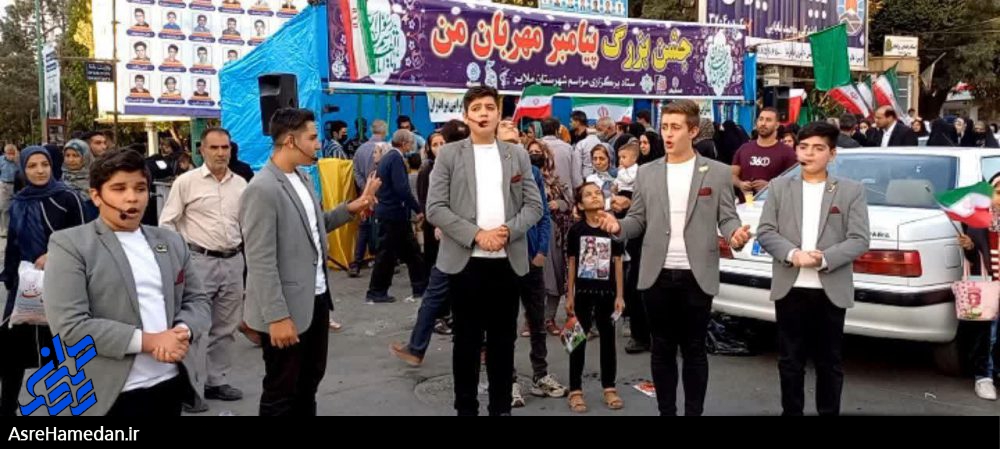 اجرای مولودی، سرود، نقاشی خیابانی، غرفه های مشاوره و نقاشی صورت کودکان از جمله مهمترین برنامه های این جشن بزرگ در ملایر بود.