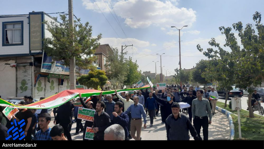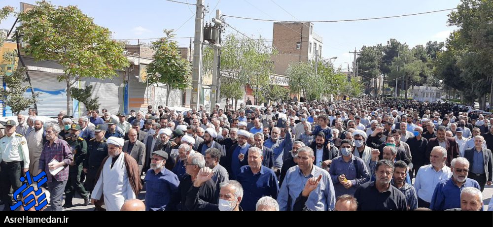 علی روزبهانی – به گزارش عصرهمدان؛ در پی درگذشت مرحومه مهسا امینی که برخی با توطئه دشمن در سطح بسیاری شهرها دست به آتش زدن پرچم، قرآن، پلیس و امکانات عمومی زدند، مردم شهرستان های استان همدان علیه آنان بعداز نماز جمعه در یک راهپیمایی اعتراضی به خیابان آمدند و شعار مرگ بر فتنه گر سر دادند.