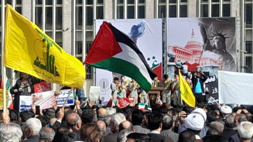 حضور پررنگ دانش‌آموزان با دست داشتن پرچم‌ کشورمان و پرچم فلسطین یکی از جلوه‌های زیبای راهپیمایی امروز است