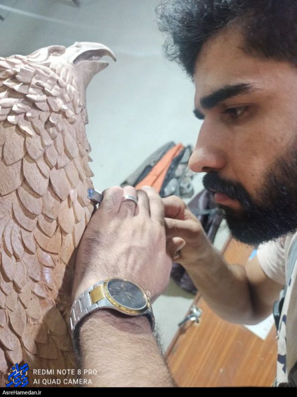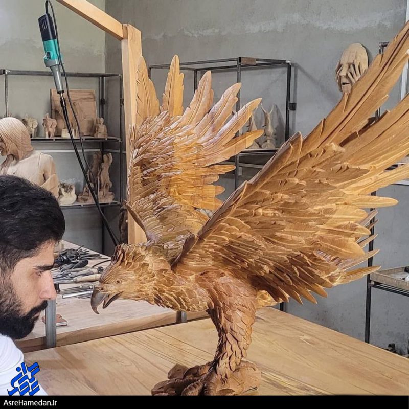 در حال حاضر هم به مرحلهای از کار رسیدم که با همکاری عموی خود هرگونه سفارش را که علاقهمندان مجسمههای چوبی سفارش میدهند قادر به ساخت آن هستیم بهعنوان نمونه قبل از آغاز اکسپو ۲۰۲۰ اقدام به ساخت یک عقاب با همکاری عموی خود کردم که این کار را بهصورت شبانهروزی در مدت ۲۵ روز بهصورت ۲ شیفت کاری انجام دادیم که اگر یک نفر بخواهد این کار را انجام بدهد بهصورت انفرادی و در هشت ساعت کار مفید مدت ۵ الی ۶ ماه طول میکشد ولی این عقاب با تلاش شبانهروزی من و عمویم در کوتاهترین زمان ممکن این مجسمه را ساخته و پردازش کردیم اما متأسفانه بنا به دلایلی این مجسمه و مجسمه حاکم امارات به نمایشگاه اکسپو نرسید، نکته جالب این مجسمه ساخت آن در قطع واقعی و با طول بالهای ۸۰ سانتیمتر ساخته شد.