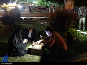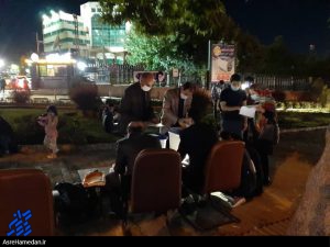پاسی از شب گذشته است و مردم برای نوشتن مطالبات خود از رئیس دستگاه قضا روبروی استاندارد ی همدان حضور دارند . امید به اثربخش بودن این مطالبات ،باعث شده است حتی تاریکی هوا هم مانعی برای نوشتن درد و دل های مردم نباشد .