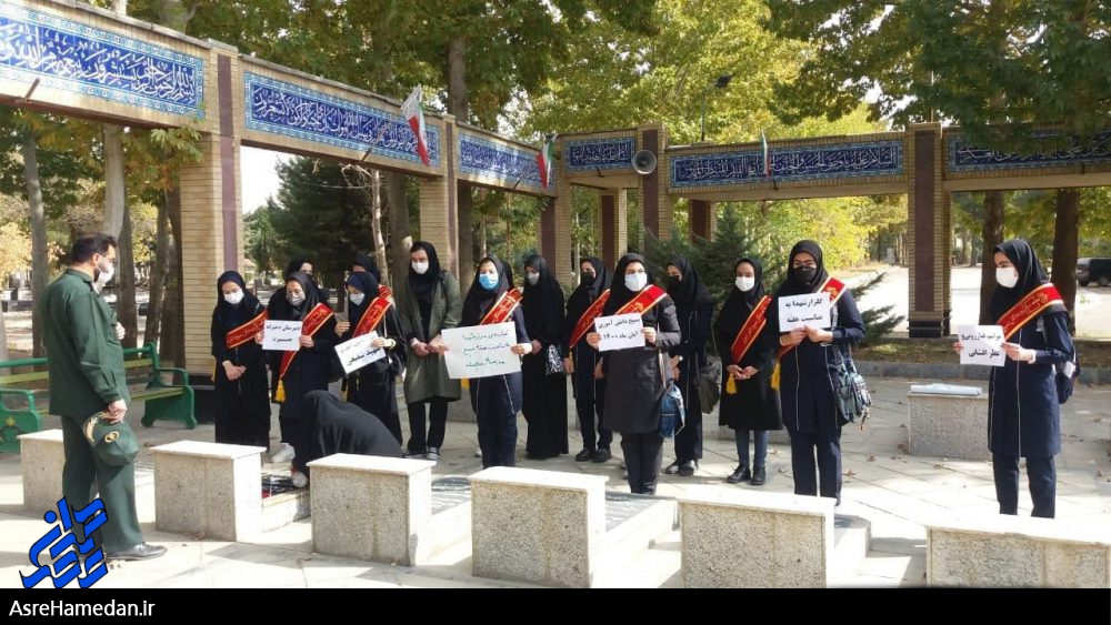 عطرافشانی مزار شهدای اسدآباد، توسط دانش آموزان بسیجی+تصاویر