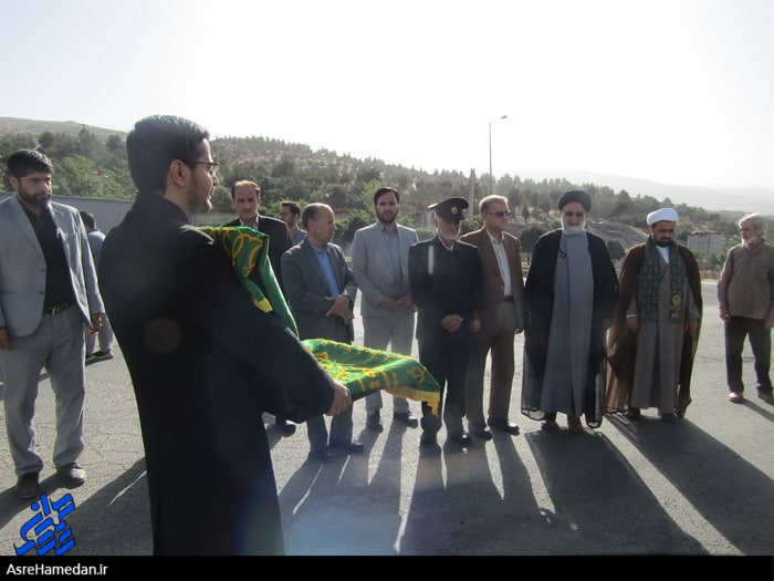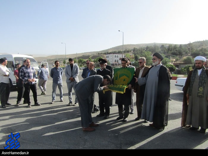 ساعتی را در ورودی شهر اسدآباد در پارک جنگلی ایستاده بودیم و از مسئولان تنها امام جمعه، فرماندار و یکی از معاونانش، بخشدار مرکزی، یکی از اعضای شورای شهر، مسئول آستان قدس رضوی در این شهر، جوانان دلداده کانون حرم رضوی، دو تن از مداحان، تعدادی از مربیان قرآنی حضور داشتند که مینیبوسی حامل ۳ خادم حرم رضوی و تعدادی اعضای کاروان خورشید و پرچم حرم رضوی پیچ های آخر گردنه را گذراندند و به منتظران و میزبانان رسیدند.