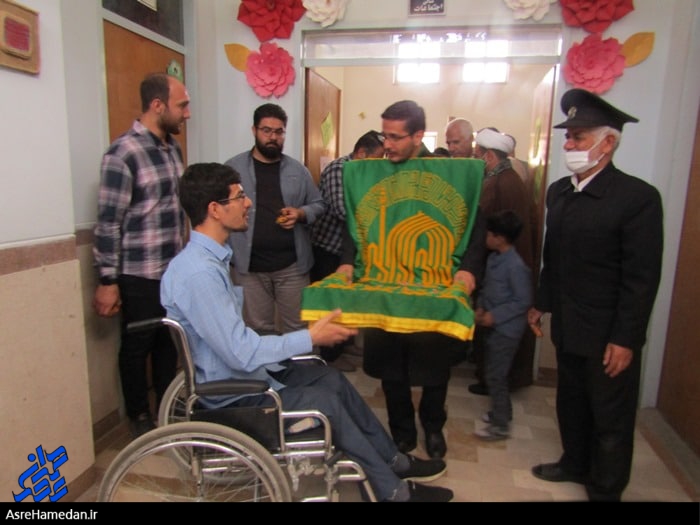 در ابتدای ورود به بیمارستان کادر خدماتی و سپس کادر درمان و کودکان بیمار دست بر پرچم مطهر رضوی گذاشته و با بوسیدن آن شفاعت و سلامتی را از امام رضا طلب کردند.