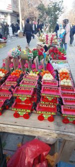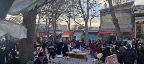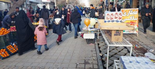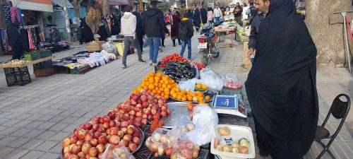 بازار خرید میوه، لباس، تنقلات، شکلات، آجیل و گوشت قرمز و مرغ داغ داغ است.