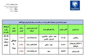 این شرکت در بخشنامه شماره ۴۳۸۷ مرحله بیست و یکم خود سه خودرو: رانا پلاس، دنا پلاس توربوشارژ اتوماتیک و پارس بنزینی را با قیمت قطعی و تحویل حداکثر ۹۰ روزه عرضه خواهد کرد.