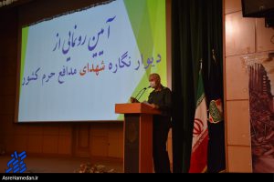 سردار مهدی ظفری مدیرکل حفظ آثار و نشر ارزش های دفاع مقدس همدان در مراسم رونمایی از دیوارنگاره شهدای مدافع حرم گفت: امروز با رونمایی از این دیوارنگاره شهدای مدافع حرم کشور، همدان به عنوان پایتخت جهادی و فرهنگی ۵۰۵ شهید مدافع حرم شد.