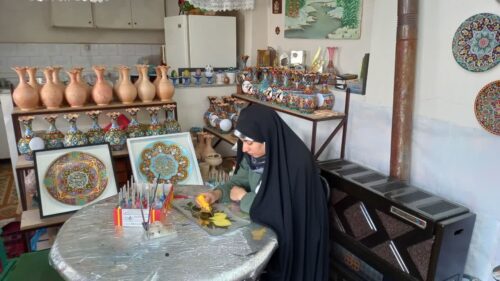 بله ما ۵ نفر هستیم که در کنار هم مشغول به فعالیت هستیم، همچنین با برگزاری کلاسهای آموزشی که با همت و تلاش میراث فرهنگی شهرستان در داخل روستاها و خود شهر داشتیم، امسال تابستان حدود۵۰ نفر در زمینه میناکاری آموزش دادیم، آنها خود میتوانند اشتغالزایی داشته باشند. در اینجا لازم میدانم از زحمات حمایت و پیگیری مسئول میراث فرهنگی شهرستان تشکر کنم.