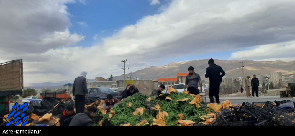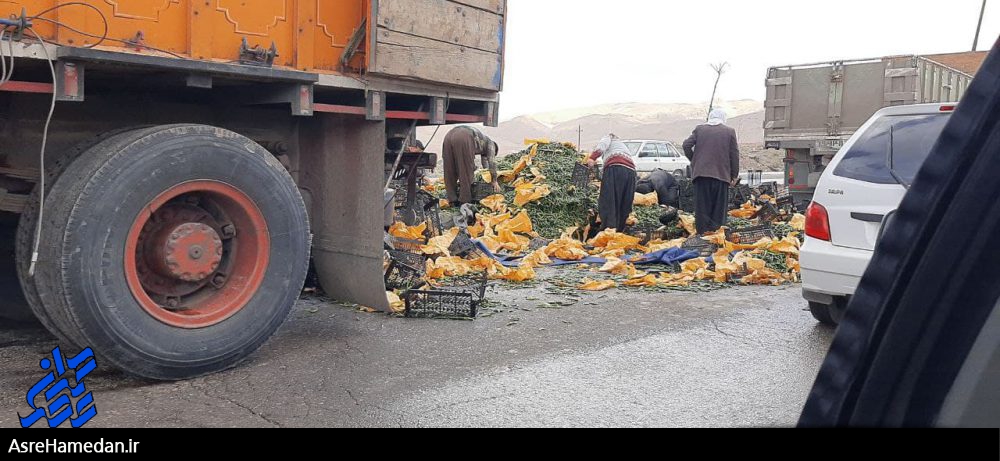مردم نهاوند در اقدامی قابل تحسین به کمک راننده رفتند و اقدام به جمع آوری بار این کامیون کردند.