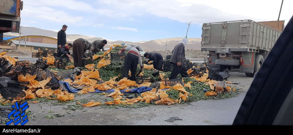 در اقدامی قابل تحسین شهروندان نهاوندی به کمک راننده کامیونی که با بار فلفل واژگون شده بود شتافتند.