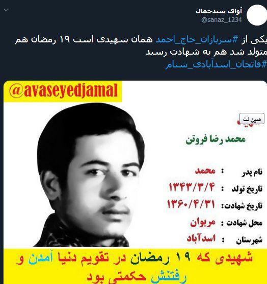 یکی از کاربران از اتفاق جالب تولد و شهادت شهیدی گفت و دیگری از آمدن پیکر یکی از شهدای شنام بعداز ۳۳ سال انتظار.
